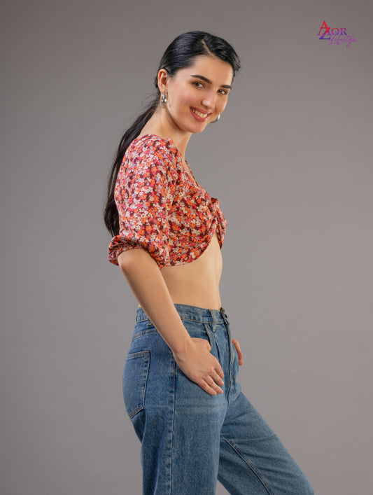 Women brown orange styled back crop top