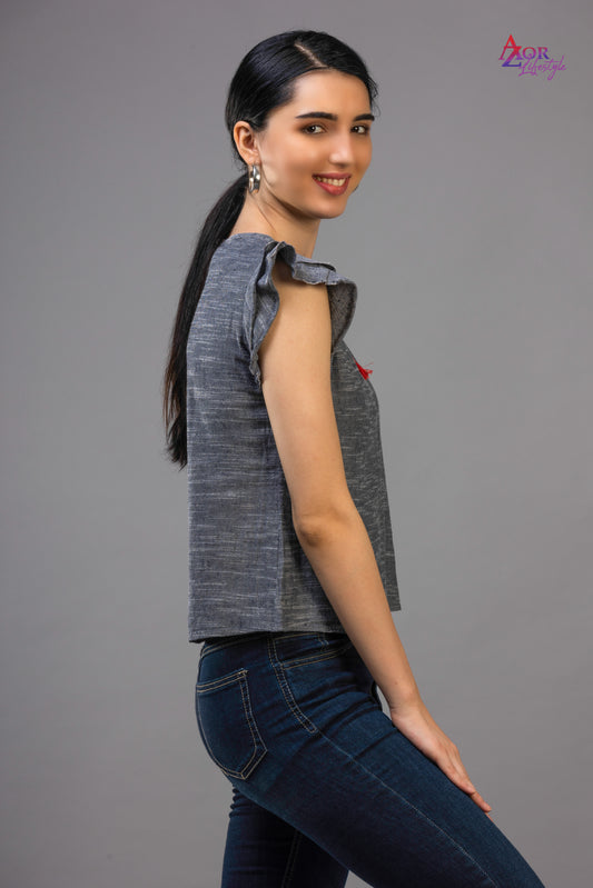 Women blue stitch cut-out crop top