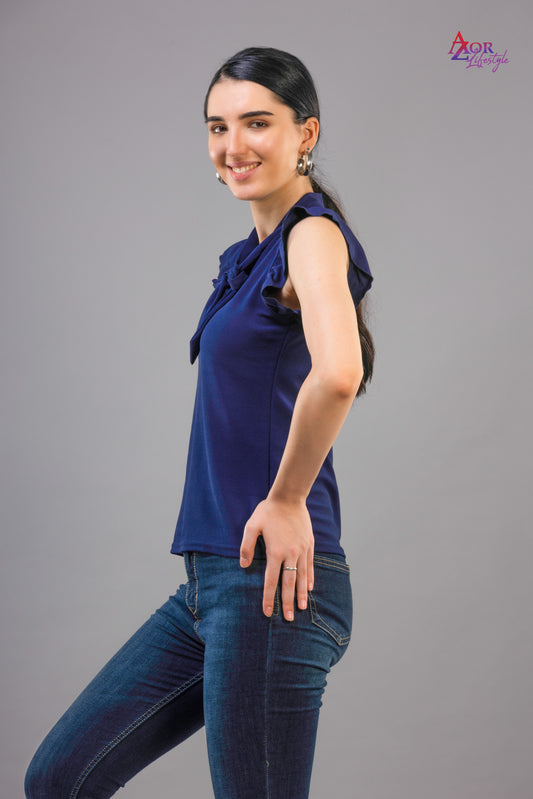 Women blue V-neck top