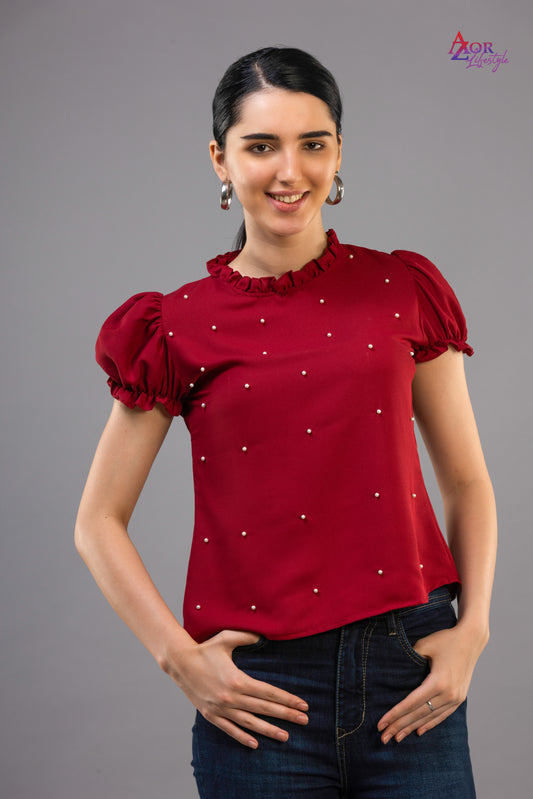 Women maroon closed neck top