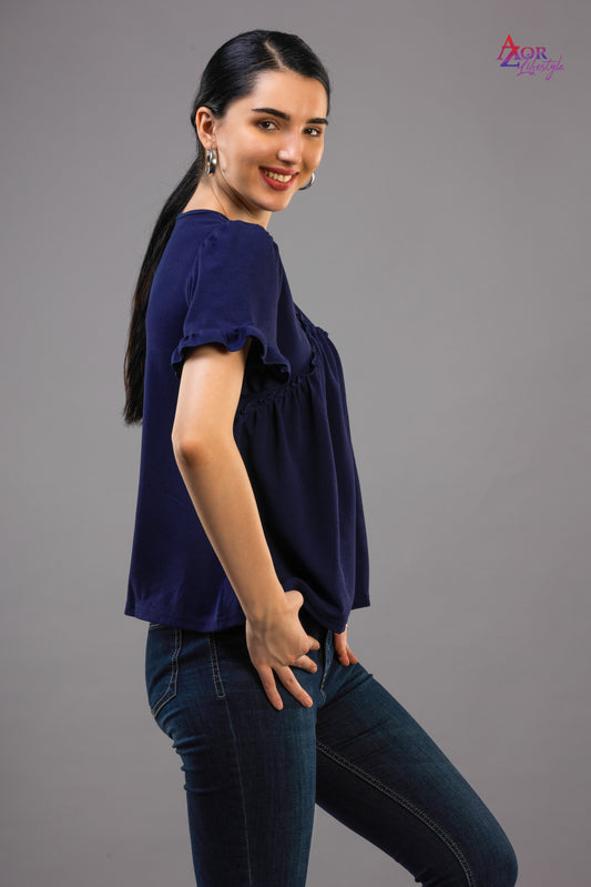 Women blue top/shirt with button