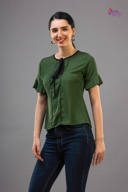 Women green half sleeve top