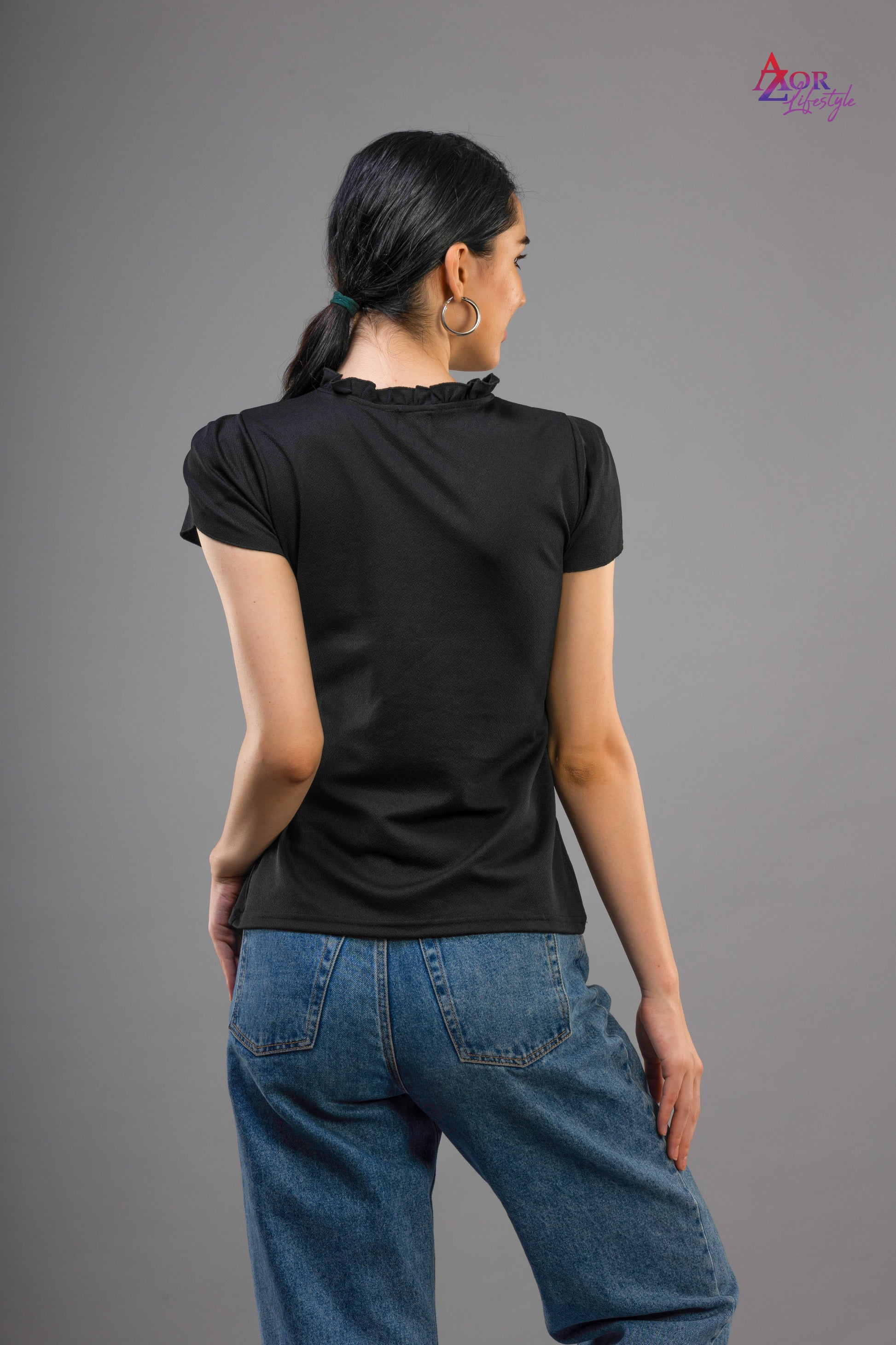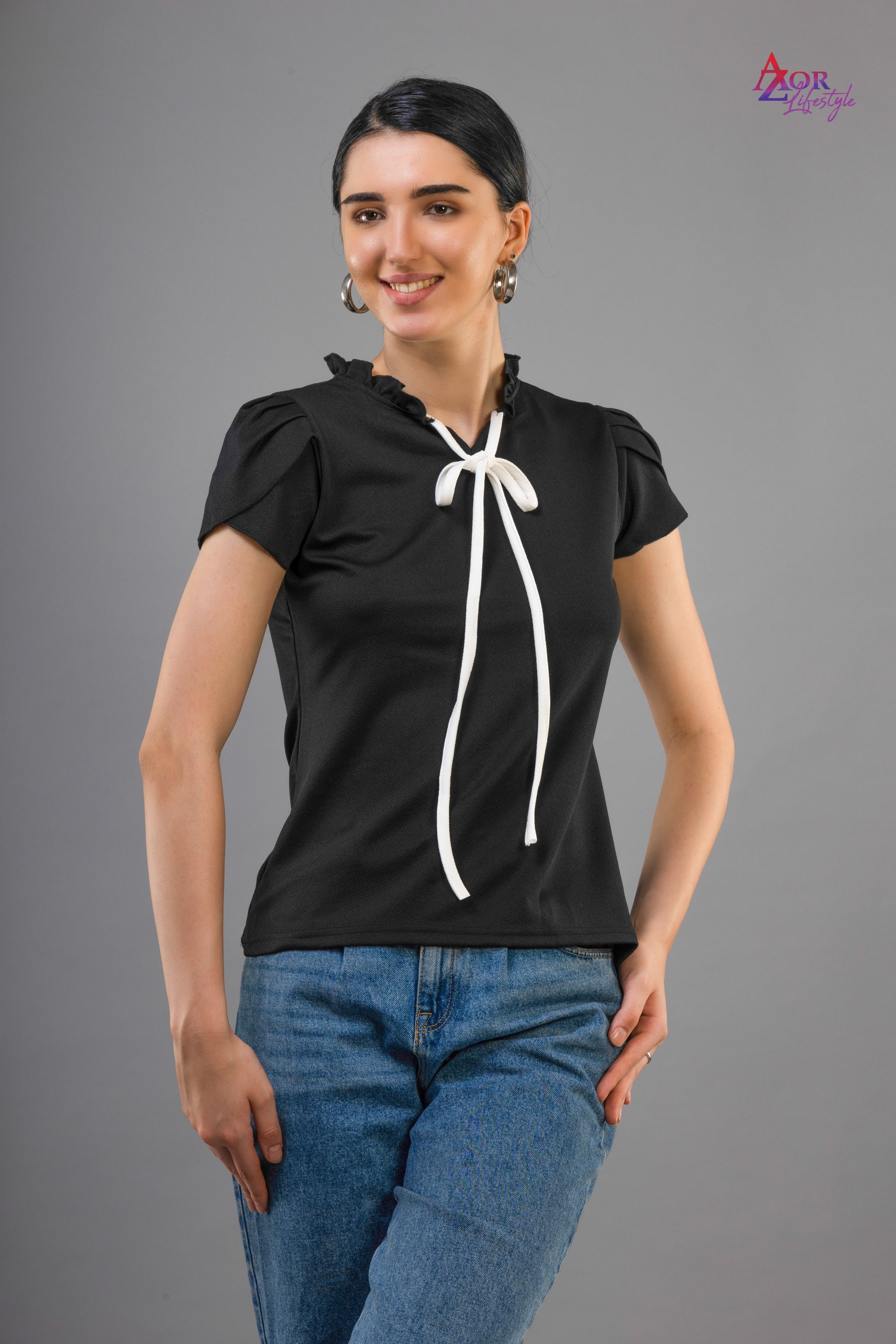 Women black top with tie